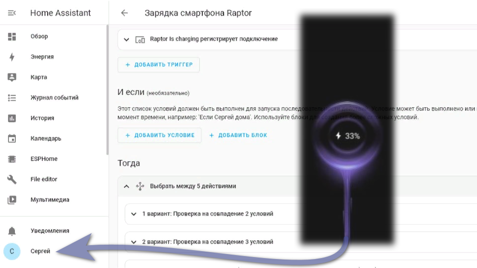 Как настроить автоматизацию зарядки смартфона на Home Assistant