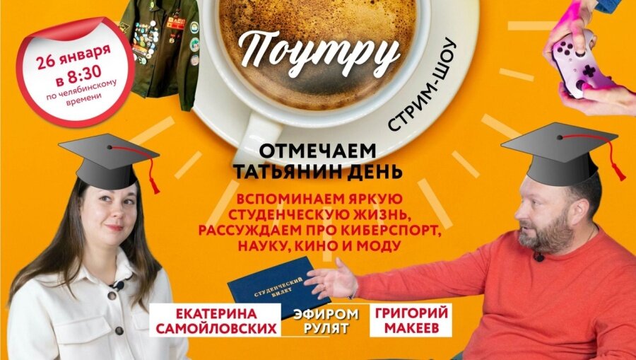 Сегодня студенты отмечают свой главный праздник. «ЧелябинскСегодня» показывал массовые гуляния в народном стиле, которые провели около главного корпуса ЮУрГУ. Потешные бои, соревнования, чай с сушками и другие привычные атрибуты праздника особенно повеселили иностранных студентов, которые сейчас учатся в вузе. Праздник продолжается: завтрашний выпуск традиционного стрим-шоу «Поутру» будет целиком и полностью посвящен студенческой жизни. В гости придут молодые люди с разными увлечениями: участница творческого коллектива «Театр моды русского костюма» и студентка ЮУрГГПУ Татьяна Стяжкина, сотрудник управления молодежной политики Челябинской области и студентка факультета фундаментальной медицины ЧелГУ Анна Михайлова, многократный победитель международных и всероссийских кинофестивалей Матвей Шолохов. Прямая трансляция шоу будет доступна в группе «Гранада ТВ».