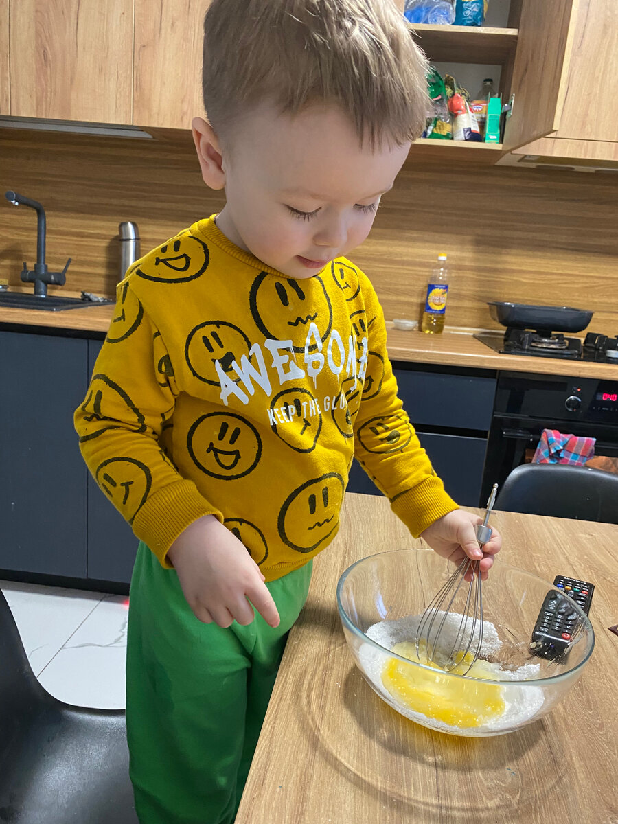 Сегодня лепили с сыном печенье, но все подумали что это булочки😅 рецепт взяла из интернета, обычное песочное тесто и добавила какао порошок, вот так они поднялись у нас 😄но получилось вкусно👍 С таким -то помощником 😊