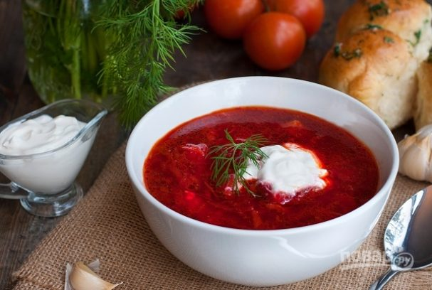 Самый вкусный борщ Еще не знаете, какое первое блюдо сделать на обед? Я хочу показать вам несложный пошаговый способ, как приготовить самый вкусный борщ. Насыщенный, аппетитный и сытный… чудесная идея для всей семьи! Описание приготовления: Это блюдо — изюминка украинской кухни, которую знают, наверное, во всем мире. Несмотря на убеждение о том, что у каждой хозяйки свой неповторимый борщ, я хочу поделиться с вами вариантом, который наверняка станет вашим любимым. Сам процесс нельзя назвать сложным, так что даже молодые и неопытные кулинары могут смело попробовать свои силы. Запоминайте рецепт как приготовить классический борщ на мясном бульоне! Состав / Ингредиенты: Количество порций - 6 Как приготовить "Самый вкусный борщ" Шаг 1. Вот необходимый нам набор ингредиентов чтобы приготовить классический борщ на мясном бульоне. Шаг 2. Для начала необходимо сварить мясной бульон. Мясо вымойте, выложите в кастрюлю и залейте водой. Добавьте лавровый лист. После закипания уберите огонь