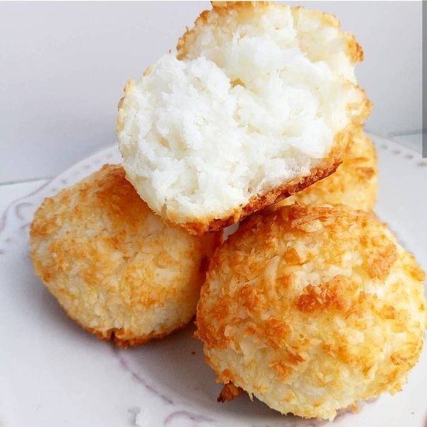 Ингредиенты: мука-100 грамм сахар белый-100 грамм кокосовая стружка-100 грамм яйца-2 штуки 1 чайная ложка разрыхлителя 1. яйца взбить с сахаром 2. добавить кокосовую стружку, перемешать 3. добавить муку и разрыхлитель, перемешать 4. убрать тесто в холодильник на 30 минут 5. руки смочить водой и сформировать из теста печенье 6. выпекать при температуре 180 градусов 15-20 минут ( в зависимости от мощности духовки) приятного аппетита)))))