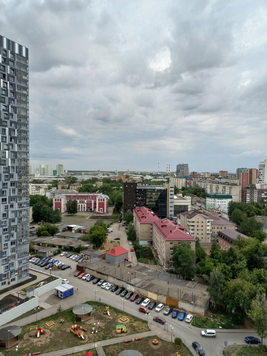 На третий день, наконец, доехали до Перми, в которой планировали сделать остановку на две ночи, передохнуть и посмотреть город. Накануне на Островке забронировали квартиру в самом центре города. Целый квартал высоток-новостроек, недавно построенный на месте снесённых домов, ещё не до конца доделан. Расширяют дороги, работает строительная техника, пробки, объезды, отсутствие мест под парковки – сразу все прелести большого города. Да ещё диспетчер не находит нашу бронь. Да ещё жара. Кое-как разобрались, но пришлось перейти в другой дом, благо, дом рядом. Видимо, в этих домах выкупили значительное количество квартир под сдачу. Самое лучшее в нашей студии – это вид на Пермь.