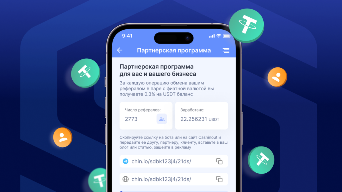 За каждую операцию Вашего реферала Cashinout.io начисляет 0.3% от суммы операции на Ваш USDT баланс. Это относится ко всем операциям с криптовалютой, от обмена фиата на криптовалюту до вывода средств: