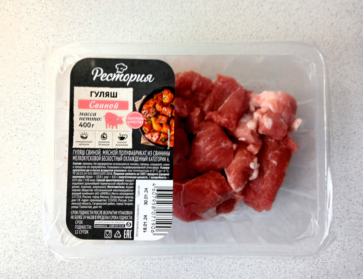 Рада приветствовать всех заглянувших. Здесь я рассказываю о бюджетном питании своей семьи (в данный момент нас двое: я и дочь-школьница). Бюджетное – не равно плохое. За качеством питания слежу. Но придерживаюсь принципа – если можно сэкономить, то почему бы и нет. Короче, кормлю ребенка и себя полноценно, при этом не трачу лишнее, ну и, разумеется, коплю на большие цели). А иначе зачем бы все это, правильно? Сегодня покажу наш рацион за три дня (22,23 и 24 января), расскажу о покупках и тратах за эти дни. Начну с покупок. 1. Гуляш свиной. Не первый раз беру такой, очень он мне нравится. Кусочки ровные, аккуратные, никакого жира и прочих ненужностей. Упаковка 400 г стоит 169 рублей. Кстати, часто бывает по акции. На следующий день заходила в магазин, видела за 144 рубля. Хорошая цена и отличный продукт. А со скидкой, так и вообще, можно взять с запасом и убрать в морозилку. 2. Тушка курицы (2 кг на 365 рублей). Возвращаюсь к истокам, так сказать. Дело в том, что раньше только та