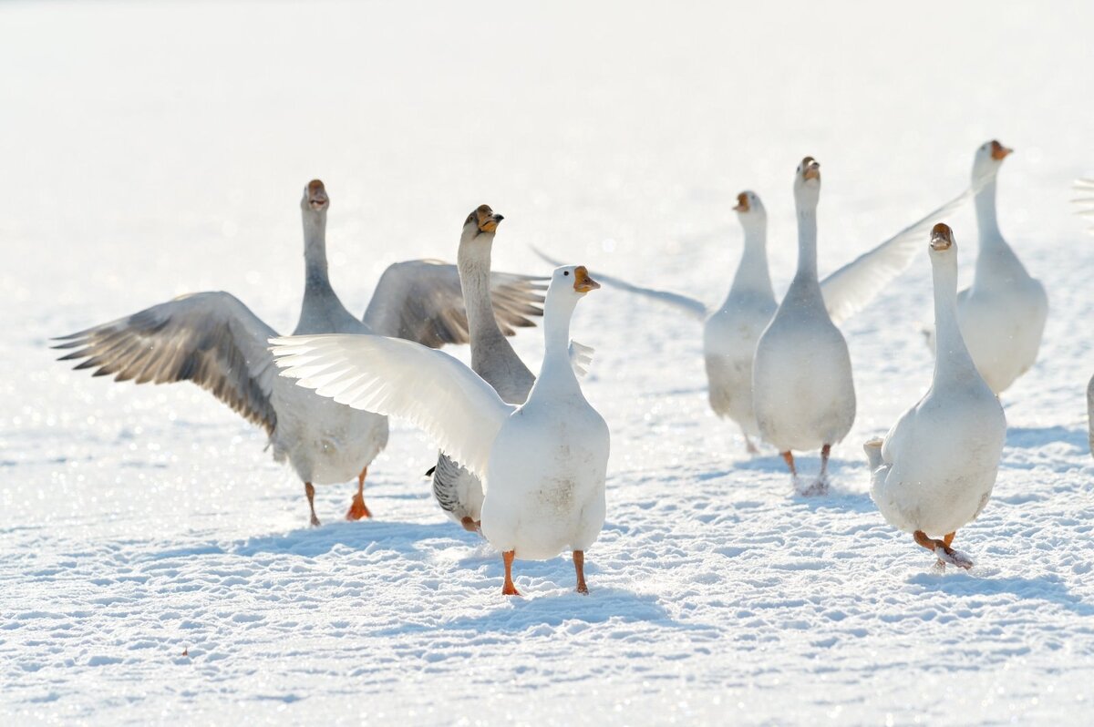 Иван ловил в загоне гуся, нес его в огород, на чистый нетронутый снег, держа за основания крыльев. Птица еще верит, что сможет избежать того, ужасного, что уготовил ей человек. Она трепыхается, стараясь вырваться, крутит во все стороны головой, издавая возмущенные гортанные крики.