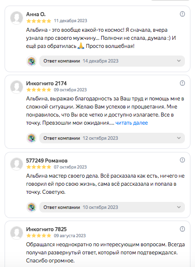 Освоение Тайн Таро: Путеводитель Сквозь Ваш Опыт Приветствую всех, кто готов вглядеться в таинственный мир карт Таро вместе со мной – Альбиной, вашим гидом в реальности предсказаний. Сегодня я хочу поделиться с вами волнующими моментами, пережитыми моими уважаемыми клиентами, чтобы вы смогли почувствовать магию этого уникального путешествия. Исскуство Чтения Таро: Язык Символов и Вдохновения Таро – это не просто набор карт, это живой язык символов, воплощающих в себе древнюю мудрость. Каждая сессия гадания – это встреча с уникальным моментом, и я горжусь подходить к ней с уважением и вниманием. Ваши Отзывы – Моя Большая Драгоценность Для меня гадание на картах – это не только предсказание будущего, но и создание гармонии в жизни каждого клиента. Я горда тем, что они так откровенно делятся своими впечатлениями. Вот несколько слов, которые запечатлели мою душу: — Путешествие в глубины себя. Сессия гадания стала для меня настоящим открытием. Ваши слова проникали глубоко в мою душу, словно