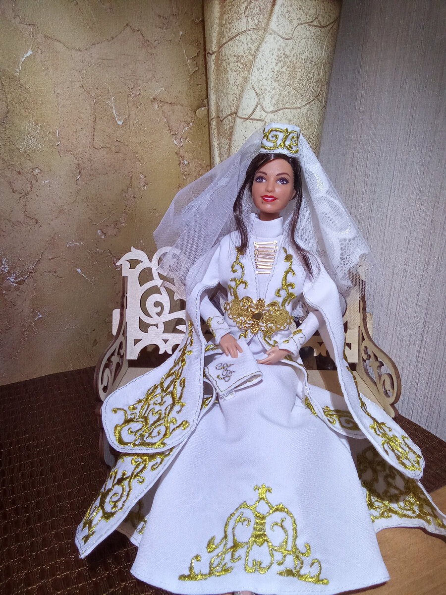 Всем огромный привет. Наконец -то я закончила свадебное платье. Если бы не свадебный коллаб, то я наверное не скоро решилась сшить это платье. Итак начнем шить верхнее платье. Переводим узор на рукава и начинается долгий процесс вышивания 😃 Как закончим вышивку сшиваем передние и задние детали рукавов Выворачиваем и обшиваем рукава Переводим деталь лифа на ткань. Начинаем вышивать Выкраиваем подклад Сшиваем выточки Сшиваем подклад и лиф Выворачиваем и вшиваем рукава Пришиваем застежку Наш лиф готов Переводим узор на юбку Вышиваем Подворачиваем и подшиваем низ и бока Пришиваем юбку к лифу Наш комплект готов Сейчас будем шить платок Помимо самого наряда непременной принадлежностью именно осетинской невесты является платочек, на котором вышиты инициалы (или имена полностью) её и супруга. Его она держит в руках на протяжении праздника. Без платочка совсем никак. Переводим шапочку и узор Начинаем вышивать Сшиваем передние и задние детали шапки Выворачиваем и подшиваем При