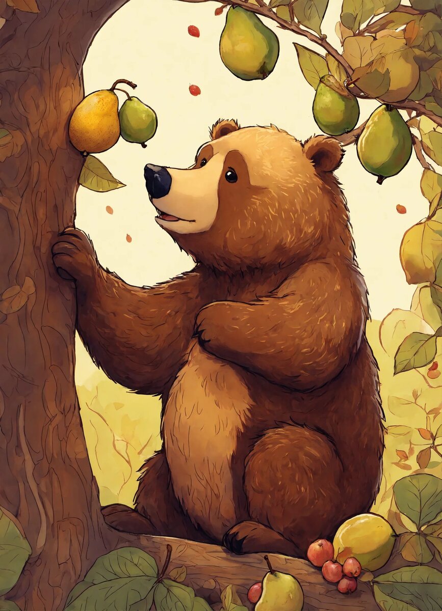 "Если я отнесу эти груши домой, я смогу продать их другим медведям за очень высокую цену, и тогда на вырученные деньги я смогу купить немного даля. Ха, ха! В конце концов, я выиграю от сделки!"