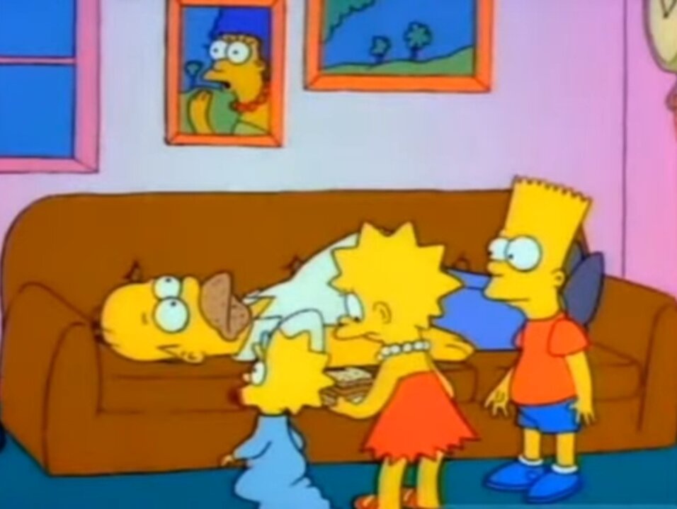 Это один из первых эпизодов Симпсонов. В первом эпизоде рисковать выглядела довольно жутко. Отрывистая анимация, хриплая аудио дорожка. Сюжет серии в том что Гомера увольняют с работы, а новую ему найти не удаётся и теперь содержание семьи легло на плечи Мардж, Китая устраивается официанткой. Так помимо увольнения Гомер успел опозориться перед одноклассниками Барта. В общем день у Симпсона явно не очень. Поэтому он идёт прыгать с высоко моста. А потом его семью чуть не сбивает машина, но Гомер вбегает на дорогу чтобы спасти их и ему это удаётся сделать. Гомер их, быстро спасёт и добивается установки дорожного знака. Старая рисовка придаёт этой серии особый мрак и ужас хоть сюжет не такой уж и жуткий.