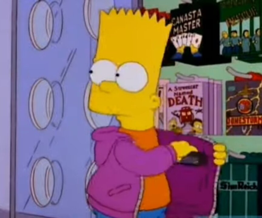 Серия Симпсонов где Брат ворует кассету, чем очень сильно огорчает свою маму. Название серии "Мардж бы это не понравилось "