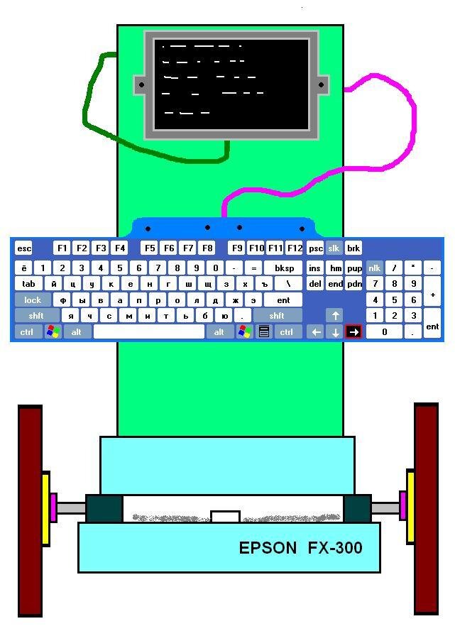 Прежде, всего для этой цели надо было модернизировать чёрно-белый принтер, типа EPSON и Системный блок с монитором. А клавиатура, в этом изобретательском проекте играет вспомогательную роль.