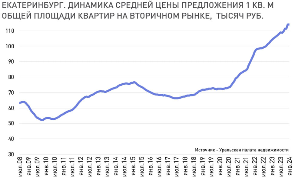 Но квартира приобреталась для жизни. И инвестиционные подсчеты, осмысление цен возникают в теории только сейчас. Кажется, что недвижимость должна была подорожать сильнее. Логика подсказывает - все так подорожало за последние 2-3 года, а за 10 лет - тем более. Все верно, только за последние 10 лет был и период снижения цен на вторичном рынке в 2015-17 гг. Те, кто не выходил на рынок в это время, не знают или не помнят об этом непростом периоде. Просадка среднего индикатора по Екатеринбургу составила около 15%. А в отдельных секторах рынка доходила до 20-25%. Позже, конечно, был и рост цен, и повышенный спрос. Но большое всегда видится на расстоянии. А насколько