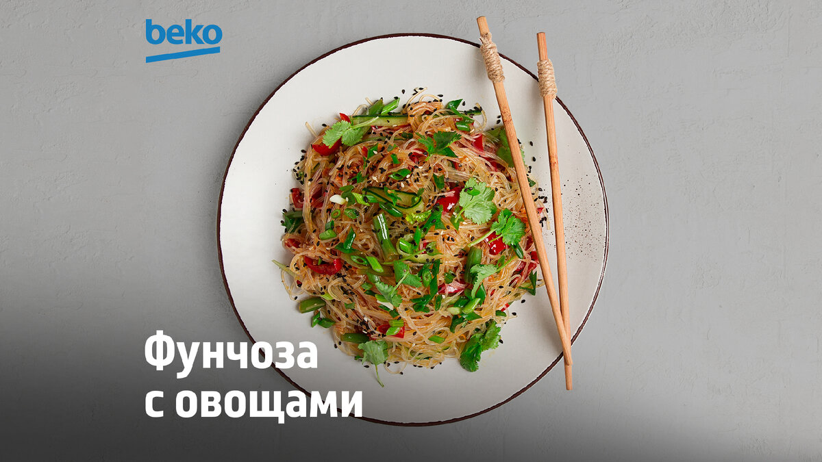 Одно из достоинств фунчозы в том, что её можно сочетать практически с любыми овощами и мясом. А ещё - в 100 граммах салата содержится 16 граммов белков и всего лишь 5 граммов углеводов. Поэтому такая лапша - отличный перекус для тех, кто следит за весом. В фунчозе отсутствует глютен, можно включить её в безглютеновую диету.