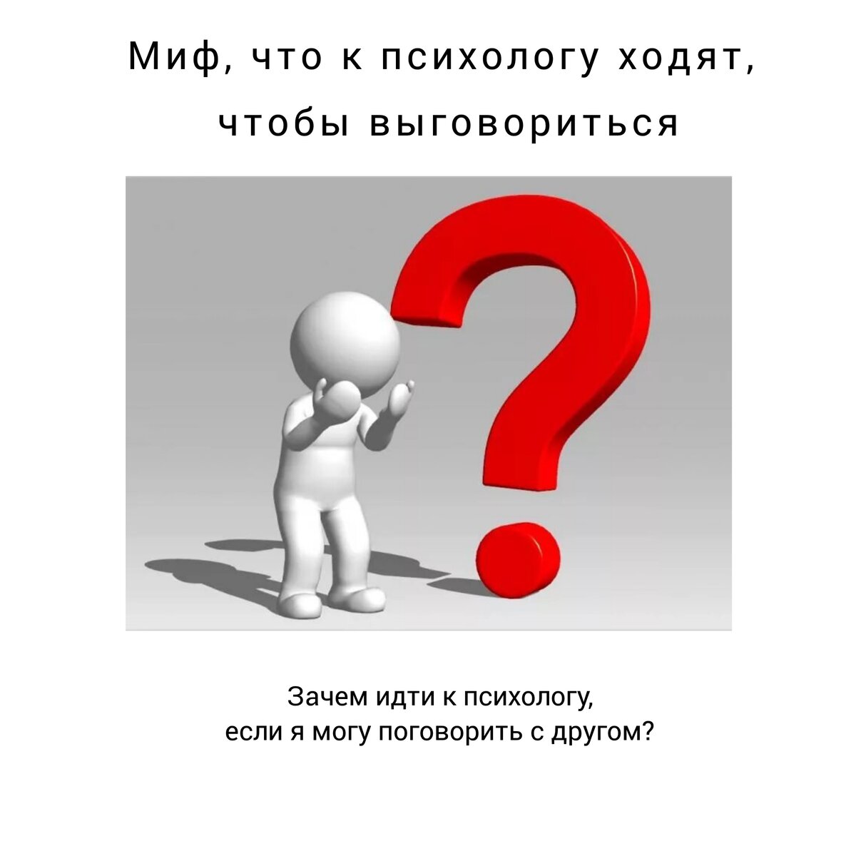 Миф о психологах номер какой-то там 😁 Есть такой, как оказалось, довольно распространëнный до сих пор миф, что к психологу ходят, чтобы просто выговориться. И соответственно возникает логичный вопрос: "Зачем мне на это деньги тратить вообще и идти куда-то, к кому-то, если есть друзья/семья и т.д." А действительно - зачем? Если честно, меня это удивляет, когда слышу такое. Я то думала, что все уже знают, как на самом деле, а нет. (Есть такое у психики искажение, что когда узнаешь какую-то информацию и длительное время владеешь ею, то начинает казаться, что все вокруг тоже в курсе)). Ну что ж, приступим к развеиванию этого мифа? Я не буду отрицать, что психолог должен уметь выслушать человека. И да, есть клиенты, которым важно выговориться! А может, есть такие люди, которые приходят только за этим, но не все. И это лишь одна из составляющих всего процесса консультации и психотерапии. Помимо этого, целью является - поиск выхода. Грубо говоря, поиск ответа на любимый вопрос клиен