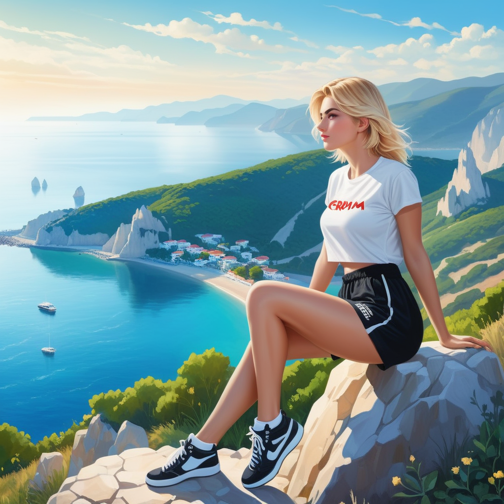 Вечером, после долгого дня пути, Я нашла идеальное место на вершине горы, где могла расслабиться и насладиться захватывающим пейзажем. расположилась на мягкой траве, сидя у края обрыва, открывающего великолепный вид на окружающие горы. Солнце уже начинало опускаться за горизонт, окрашивая небо в оттенки оранжевого и розового.