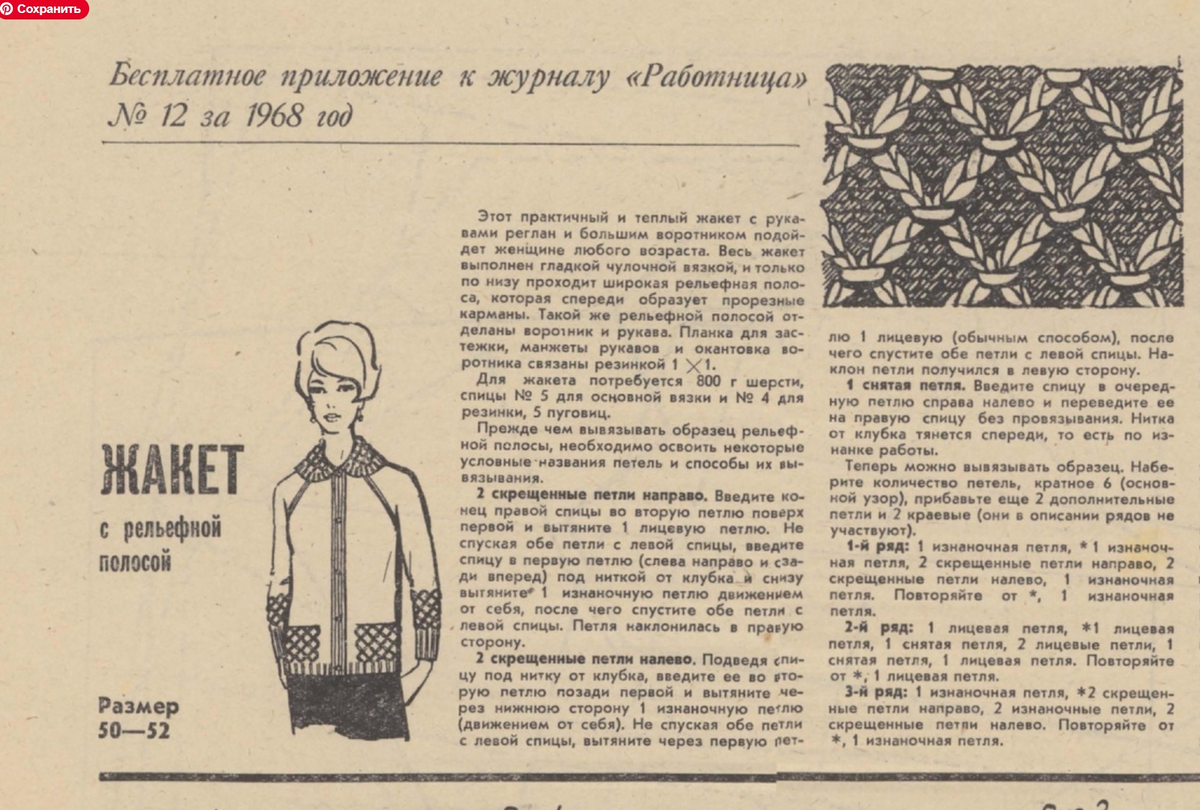 Когда я листала старые журналы по вязанию, мне пришло в голову, что те, кто выписывал Работницу и другие журналы не столько для чтения передовых статьей, сколько ради этих страниц с описанием вязания-шитья одежды, -- были счастливее, чем мы, у которых есть интернет. Почему? Тогда не было такого избытка информации. Вот описание вязания и выкройки такого-то жакета в приложении — выкройку увеличивать-уменьшить, пряжу покупную не только одного цвета, но и из разной пряжи от распущенной вещи, добавить что-то своё, как фантазия и умение позволяют, то есть творить.