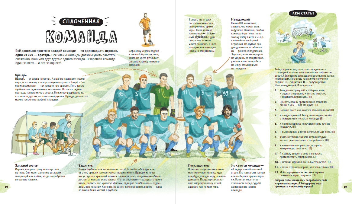 Для юных футболистов очень важно постоянно подпитывать интерес к игре. В первую очередь, это задача родителей. Мотиваторами могут стать как совместные походы на матчи, просмотры фильмов, так и интересные книги. В последнем случае дополнительный бонус - пополнение словарного запаса и формирование грамотной речи. Для совсем маленьких футболистов до 6-ти лет отличной подойдут книги: «Как медвежонок в футбол играл» (Евгений Новицкий) «Пауль становится звездой футбола» (Бригитта Венингер) В обоих книгах много цветных иллюстраций, которые будут интересны детям. Для детей возраста 6+ отличным вариантом станут книги: «Футбол. Книга о мастерстве и драйве» (Александр Муйжнек, Анастасия Батищева) Это интерактивная книга, посвященная футболу. Тут есть и загадки, и викторины, и тесты, и очень много иллюстраций с множеством деталей. «Футбол в интересных фактах и потрясающих историях» (Андреа Миллс) Начинается все с истории этого вида спорта. А дальше малышей познакомят с секретами известных тренеров