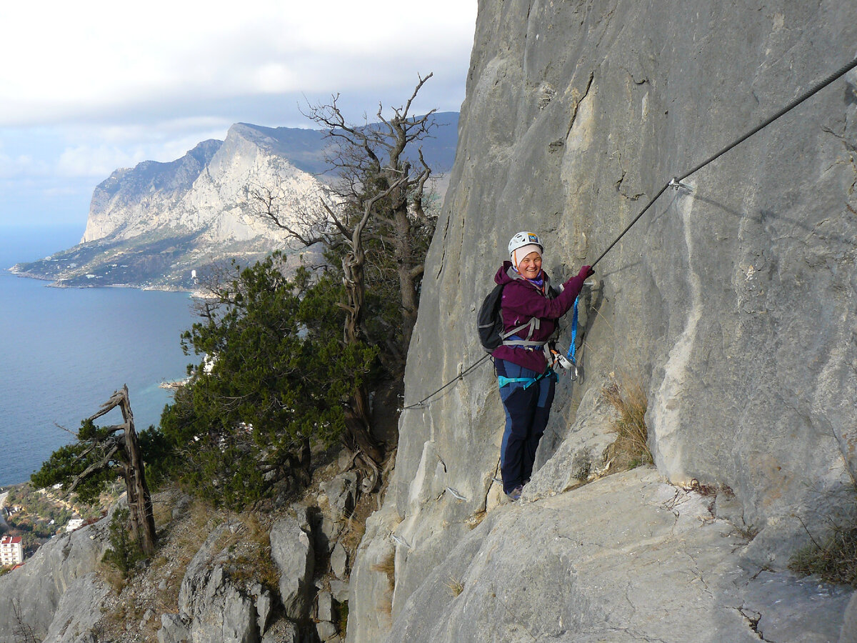 Бонусом идут потрясающие виды. Действительно потрясающие. Южный берег Крыма в принципе похож на сказку, а с высоты птичьего полета и подавно. Живописные скалы, море - красота! И мысль о том, что ты сюда сама залезла, тоже как-то вдохновляет и заставляет задуматься о расширении границ своих возможностей. Вернее, представления о них. Возможностей - телесных и психических - у нас, у человеков, на самом деле до хрена!