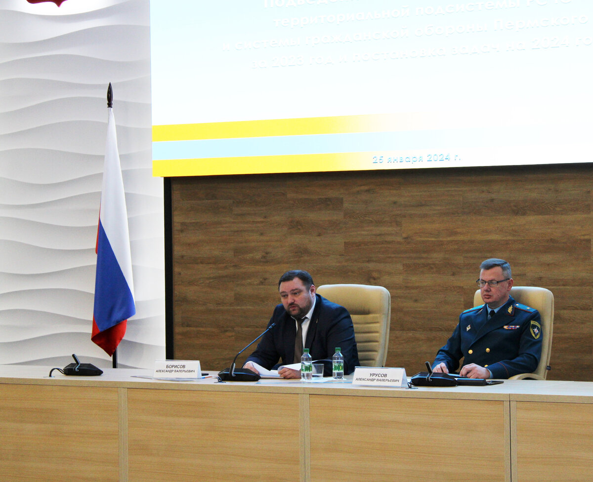 ❗ 25 января под председательством заместителя Председателя Правительства Пермского края Александра Борисова и начальника Главного управления МЧС России по Пермскому краю генерал-майора внутренней службы Александра Урусова в Правительстве Пермского края состоялось подведение итогов деятельности Единой государственной системы предупреждения и ликвидации чрезвычайных ситуаций (РСЧС) и системы гражданской обороны субъекта за 2023 год, в котором приняли участие руководители территориальных органов федеральных органов исполнительной власти субъекта, главы муниципальных образований, представители организаций, входящих в функциональную и территориальную подсистему РСЧС Прикамья, победители региональных смотров-конкурсов. - Уважаемые, коллеги! Главным из направлений деятельности Правительства Пермского края, исполнительных органов государственной власти и органов местного самоуправления муниципальных образований Пермского края в сфере обеспечения безопасности является защита населения и террито