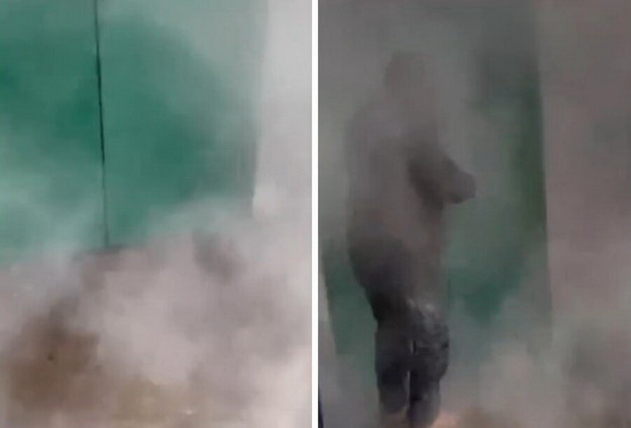 Новая коммунальная авария произошла по адресу Горский микрорайон, 48.Жители сняли видео, как из труб в подъезде бурным потоком течет горячая вода, а пространство заволокло паром.