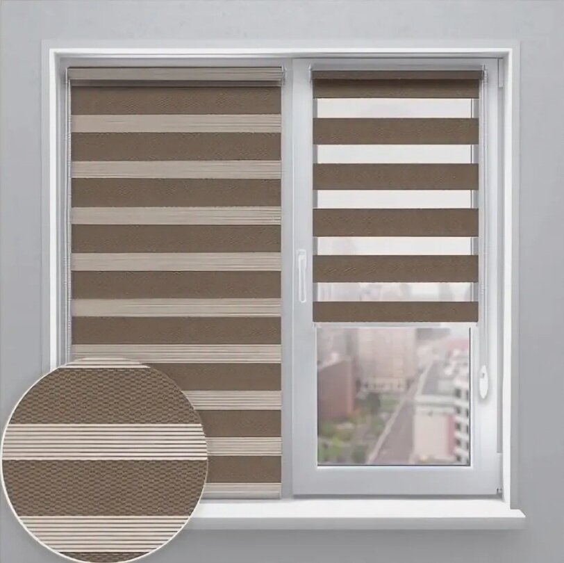 Свое название они получили благодаря полотну ткани, в котором чередуются непрозрачные и прозрачные горизонтальные полосы. Из-за такой «полосатости» получили символичное название «Зебра» Рулонная штора ЗЕБРА – рулонная штора с чередующимися полосами прозрачной сетки/вуали и более плотной ткани, применяемая в обычных рулонных системах. В готовом изделии всегда используется двойное полотно ткани ЗЕБРА, позволяющее закрыться от посторонних глаз и регулировать поступление света в помещение за счет смещения непрозрачных полос друг относительно друга. Четкие линии ткани визуально расширяют внутреннее пространство, а их декоративное совершенство создает неповторимую гармонию интерьера. Управляются рулонные шторы Зебра при помощи цепочки которая может располагаться справа или слева. По желанию клиента могут быть моторизированы.Помимо регулировки уровня освещенности можно полностью поднять штору при необходимости. У рулонных штор зебра ТЕТРИС мелкий жаккардовый рисунок, отдаленно напоминающий хл
