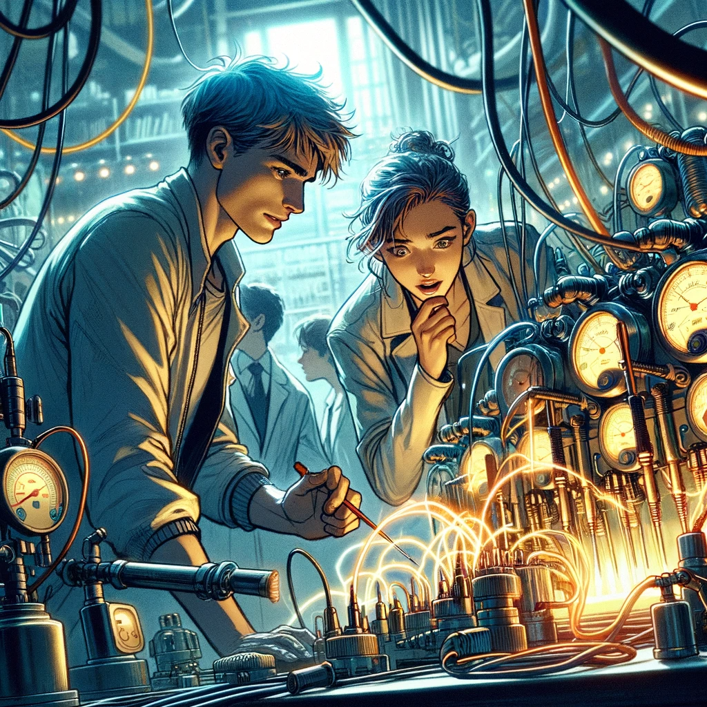 "Макс, ты уверен, что правильно подключил энергогенератор?" - настороженно спросила Лира, наблюдая за мигающими индикаторами.