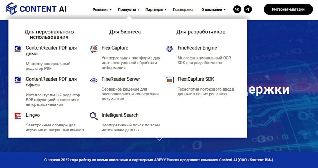 Начало 2022 года ознаменовалось уходом с российского ИТ-рынка одного из мировых лидеров в области интеллектуальной обработки информации – ABBYY. Бывшая команда представителей их российского офиса создала новую компанию Content AI, которая взяла на себя обязательства по обслуживанию и техподдержке всех российских пользователей, а также лицензировала технологии ABBYY и приступила к выпуску собственных продуктов. Сегодня Content AI разрабатывает интеллектуальные решения для обработки информации на основе передовых технологий распознавания текста.
