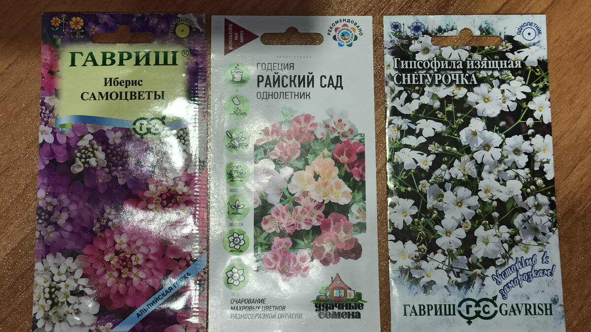 Вот первые три вида цветочков. Иберис, Годеция, Гипсофила. Мне сказали второй и третий, их вообще на клумбе смешать можно и будет красиво. Кто нибудь так делал? Правда красиво?