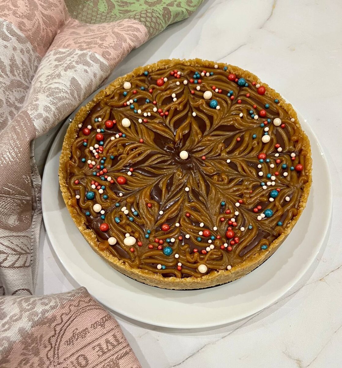 Прекрасным рецептом и фотографиями поделилась Ирина, большое спасибо! --- 👉 Вам понадобится (для торта диаметром 20-22 см): Для основы: • Печенье - 300 г • Сливочное масло - 70 г • Сок апельсиновый или молоко - 50 мл • Корица Dr. Bakers - 1/2 ч. л. --- Для карамели: • Сахар - 100 г • Сливочное масло - 100 г • Сливки (20%) - 70 г • Соль - щепотка • Арахис жареный - 200 г --- Для ганаша: • Сливки (33-35%) - 170 г • Шоколад тёмный - 170 г --- Для декора: • Посыпка «Жемчуг» Dr. Bakers - 1 упаковка 👉 Способ приготовления: ① Для основы измельчаем печенье (300 г), вливаем растопленное масло (70 г), апельсиновый сок (50 мл) или молоко, добавляем корицу (1/2 ч. л.), перемешиваем. ② Для карамели сахар (100 г) растапливаем не мешая (можно слегка покачивать сотейник). Добавляем масло (100 г), перемешиваем, вливаем сливки (70 г), добавляем щепотку соли, смешиваем до объединения. Провариваем пару минут, снимаем с огня, пробиваем блендером. ③ Оставляем остывать. ④ Для шоколадного слоя горячими с