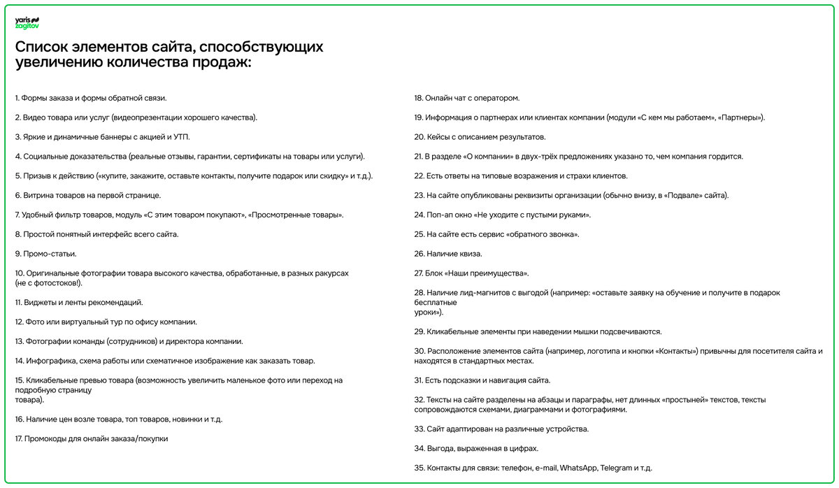 35 важных элементов на сайте, который способствуют высокой конверсии: