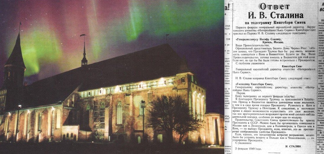 Далее Сталин предложил встретиться в СССР. И после Москвы с Ленинградом третьим подходящим для этого городом назвал Калининград.