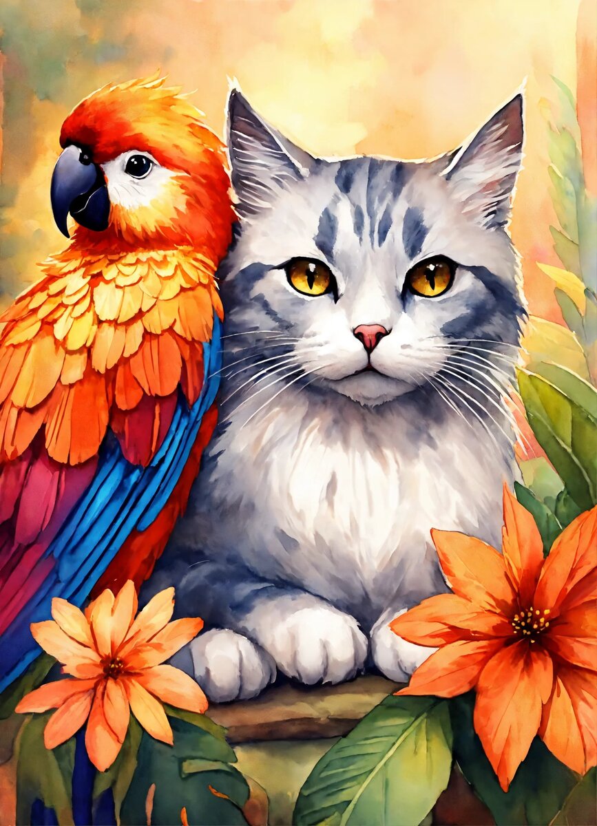 В древние времена в лесу жили два невероятных друга. Одним был попугай с огненно-желтыми перьями, названный Аполлоном в честь бога солнца. Другим был кот по имени Пардус, что означает Пантера, хотя на самом деле он был совсем не похож на пантеру. Друзья отличались друг от друга, как день и ночь. Попугай Аполлон всегда был настороже. Сидя высоко на деревьях, он зорко следил за всем, что происходило внизу. Если он замечал человека-охотника, пробирающегося сквозь кусты, или тигра, крадущегося в подлеске, он хлопал крыльями и кричал во всю глотку: