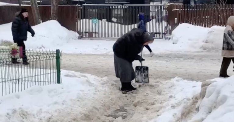Героиня дня — бабушка из Тимирязевского района, которая сама вышла чистить снег лопатой