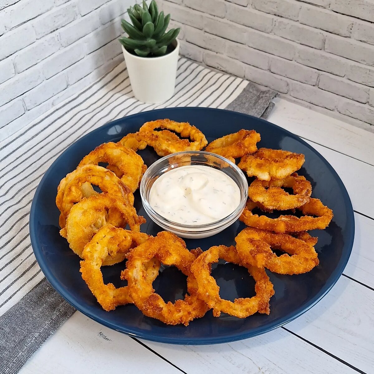 Я очень люблю изучать кухни разных народов, потому что еда - это часть культуры, истории и души каждого народа. Сегодня у меня будет блюдо американской кухни. Хрустящие луковые колечки. Это отличная закуска к пиву или перекус под интересный фильм. Кухня Соединенных Штатов Америки очень простая, при этом необычайно вкусная. Ингредиенты: ------------------------ ▪️Лук репчатый - 2-3 головки ▪️Яйца - 2 ▪️Соль - 1 ч.л. ▪️Растительное масло - 100 гр ▪️Мука пшеничная - 100 гр ▪️Сметана - 100 гр ▪️Сухари панировочные - 100 гр. Приготовление: --------------------------- 1. Лук нарезать колечками толщиной примерно 6 мм. 2. Обдать колечки в дуршлаге кипятком. Дать воде стечь. 3. Для кляра взбить яйца, добавить соль и сметану, вмешать муку. Кляр должен полуиться густым, как тесто на оладьи. 4. Окунуть колечки в кляр. 5. Обвалять их в панировочных сухарях. 6. Обжарить колечки в горячем масле с двух сторо до золотистого цвета. Выложить их на бумажное полотенце, чтобы стекло лишнее масло. 7. П