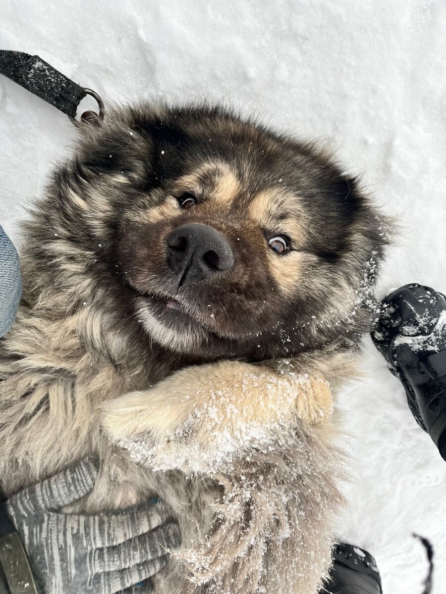 Марту отвели в другой вольер, но потом и с его крыши сошла лавина, и Марта снова разломала решетку и убежала, и в этот раз уже совсем глубокой ночью, так что о ее исчезновении я узнала только утром. К счастью, умная Марта побежала по нашему привычному прогулочному маршруту, и я нашла ее лежащую у ворот дома рядом с озером, где мы обычно гуляем.
