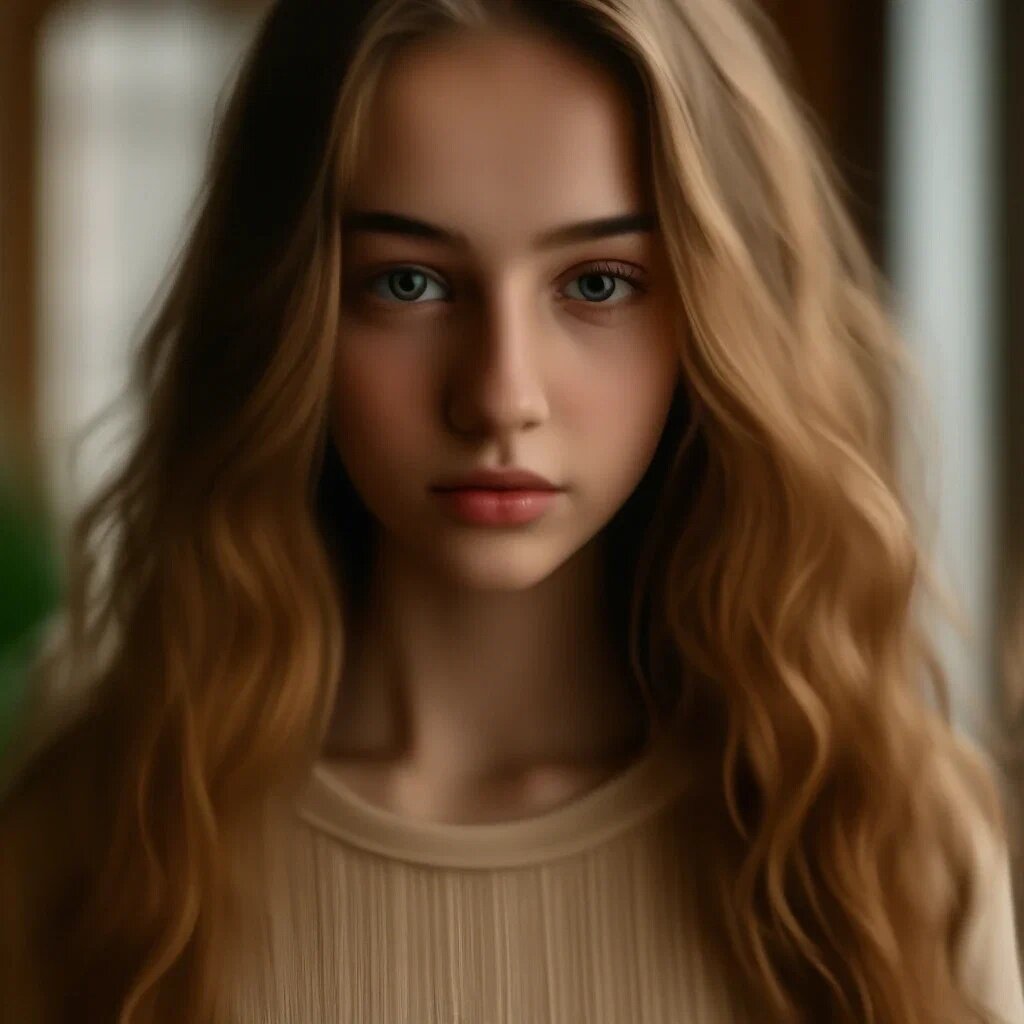 И девочки увидели, что к маме бежит красивая девушка с вьющимися светло-каштановыми волосами, прямым носом и серыми глазами.