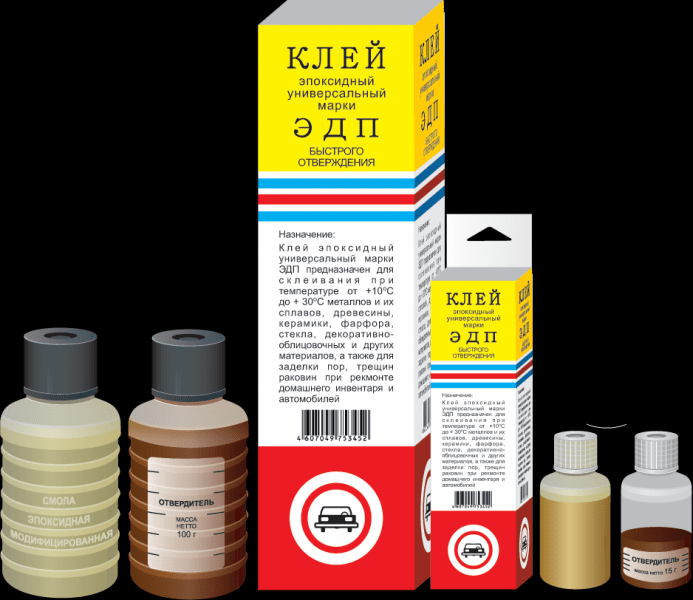Следующим популярным составом является «Холодная сварка». По консистенции схожа с «Моментом». В основном применяется для склеивания металлических деталей, но подходит и для пластика. Не вступает в реакцию с металлами. ЭДП – состав, используемый для склеивания поверхностей из различных материалов в быту и на производстве. Поставляется в двух пластиковых емкостях. Смешивается в соотношениях, указанных выше. Эпоксидный клей: виды, свойства, характеристики. Правила использования клея, меры предосторожности, применение пластификаторов и отвердителей.