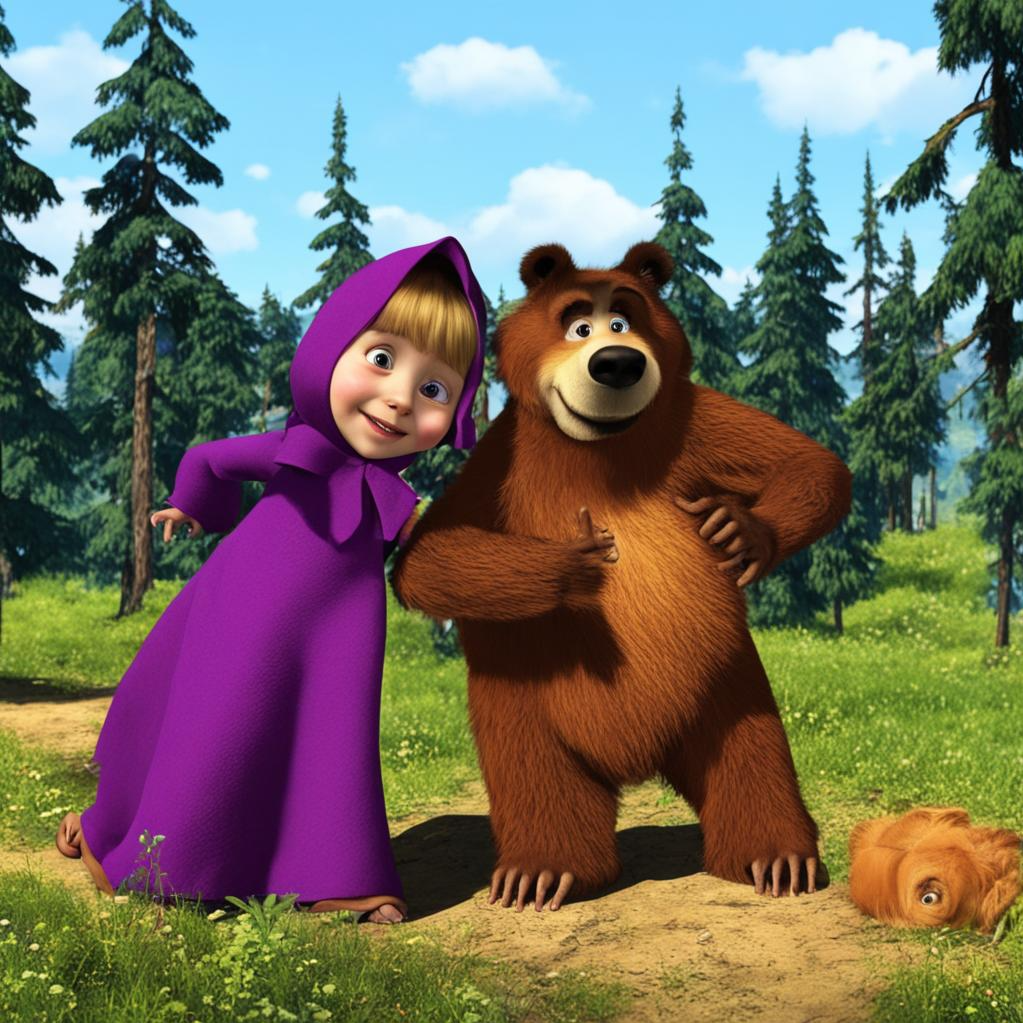 Маша и Медведь Теодор смотрели, как радуга пролетела небо, засияв новыми красками. Их дружба и усилия принесли счастье в этот волшебный уголок мира, напоминая всем, что силу мечты можно вернуть, если верить в чудеса.