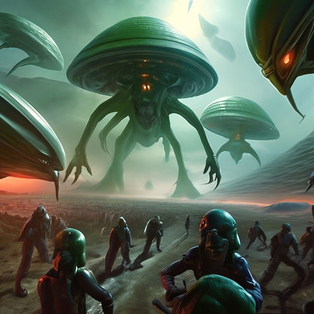 Очень часто, стали сниться сны про вторжения, нападения инопланетян. Приснился сон, как фильм посмотрел. Только ещё плюсом ко всему, сам был в центре событий. Вижу разрушенный город. Везде царит хаос и паника. Всё выглядело вокруг как в фильме про апокалипсис. Люди прячутся кто куда, лишь бы не находиться на открытом пространстве. Вышел на улицу и осторожно огляделся. Слышу громкий металлический звук, который доносится с неба. Поднимаю взгляд вверх и вижу, как среди облаков летают какие-то огромные летающие объекты. Стало как-то жутковато. Я быстро забежал в здание и не мог понять всего происходящего. Слышу резкий и громкий хлопок, будто что-то ударилось о землю. Следом за ударом последовал скрежет металла и другие непонятные звуки. Я спрятался в одной из комнат здания и решил потихоньку подползти к окну, чтобы посмотреть на происходящее на улице. Пока подползал, слышал ужасающие звуки, то-ли рычание, то-ли скрежет металла переплетающийся с какими-то хрипами. Кругом кричали люди. Под