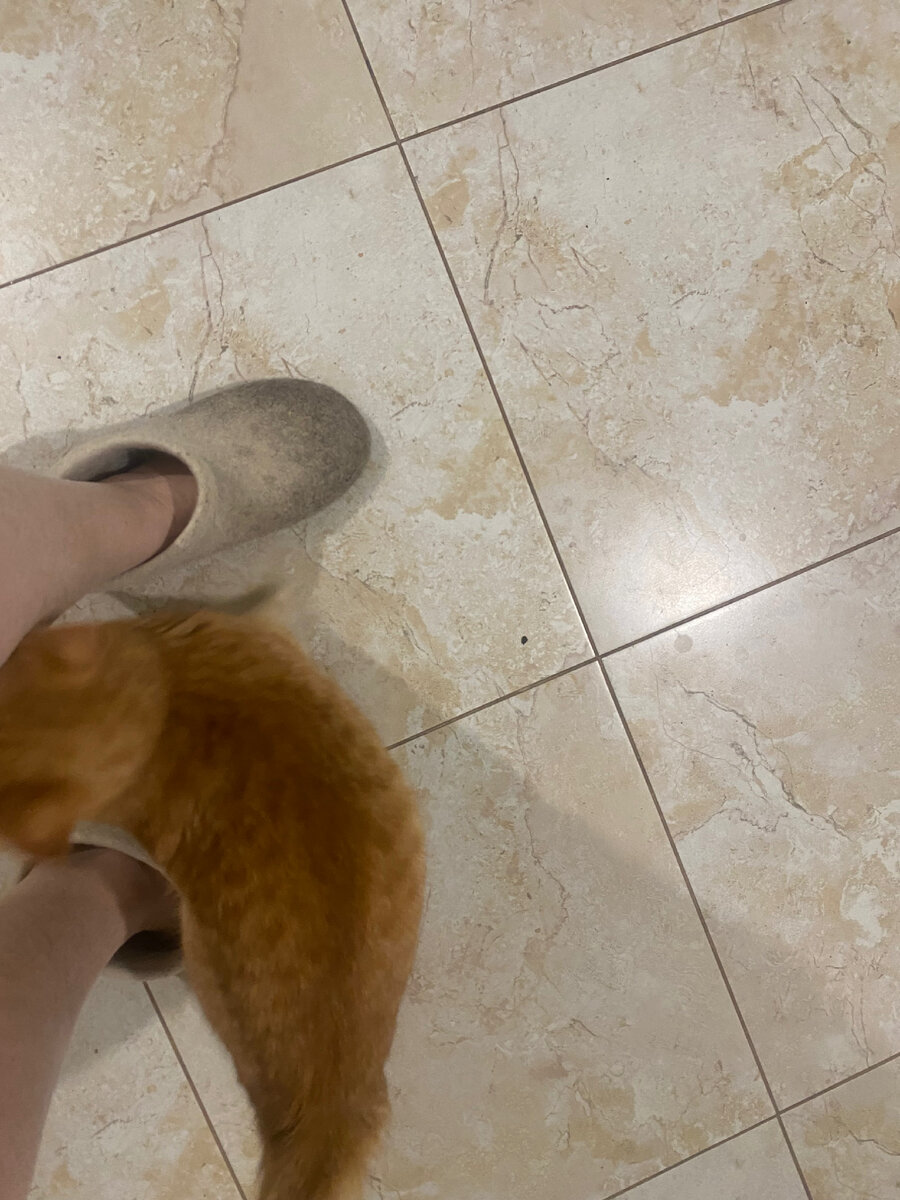 Если я стою в валенках, то он просто трётся об ноги, но если я стою босиком то он начинает мне лизать пальцы на ноге на ноге, а потом большой палец начинает слегка кусать, не понимаю что он этим хочет сказать ?)