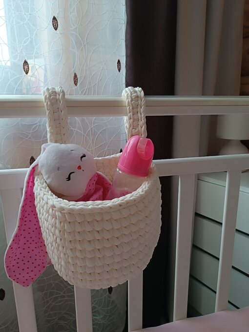 Красивая и очень удобная корзинка на кроватку, которая всегда будет под рукой.