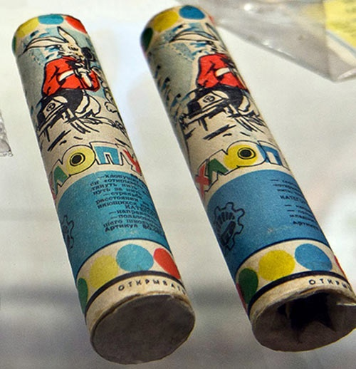 На Новый год в СССР была традиция запускать хлопушки, в наше время чаще салюты устраивают. Ждал Нового года именно из-за хлопушек, ниже объясню почему. Прежде пару слов о самих хлопушках. Новогодние пиротехнические хлопушки в СССР производились на заводах "Авангард", "Волна", "Днепропластика" и других. Кроме бенгальских огней и хлопушек в СССР больше не было пиротехники. Это в наше время большое разнообразие фейерверков, петард, салютов, ракет и т.д. Хлопушки были по нашим дням неказистые, выстреливали конфетти (бумажными кружочками разного цвета), а в некоторых были разные сюрпризы, в мое время преимущественно фигурки животных. У каждого свои предпочтения, лично нравился не столько пуск хлопушки, сколько как раз конфетти, а особенно игрушка сюрприз. В каких-то хлопушках, а они были разные, фигурки могло не быть, это вызывало разочарование. Если вспомнить о фигурках, то самими массовыми были черепашки, крокодилы, поросята, котики попадались реже. После новогодней ночи эти фигурки искал