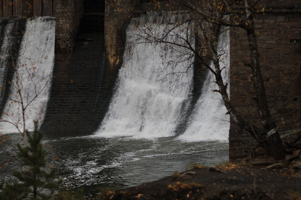 Урочище Пороги уникальное место в Саткинском районе Челябинской области. Однако порогов в привычном понимании вы здесь не найдете. Пороги с большими перепадами высот и водопадами были на этом участке реки Большая Сатка раньше, до сооружения здесь плотины гидроэлектростанции. С постройкой немцами огромной плотины из бутового камня все изменилось. Бурлившие до этого речные пороги ушли под воду. Зато здесь построили старейшую гидроэлектростанцию России, которая и принесла в наши дни славу этому затерянному в уральских горах месту. Образованный плотиной живописный пруд находится между двух хребтов, поросших хвойным лесом. Природа здесь очень красивая, открываются великолепные пейзажи. Камень для возведения плотины брали неподалеку. Кладка представляет собой крупные обработанные камни и плиты, которые скрепляли глиной и цементом. Плотина в Порогах имеет форму дуги. Ее высота 21 метр, длина по гребню 125 метров. Ширина плотину по низу 12,5 метра, по гребню 4,2 метра. В этом уголке практиче