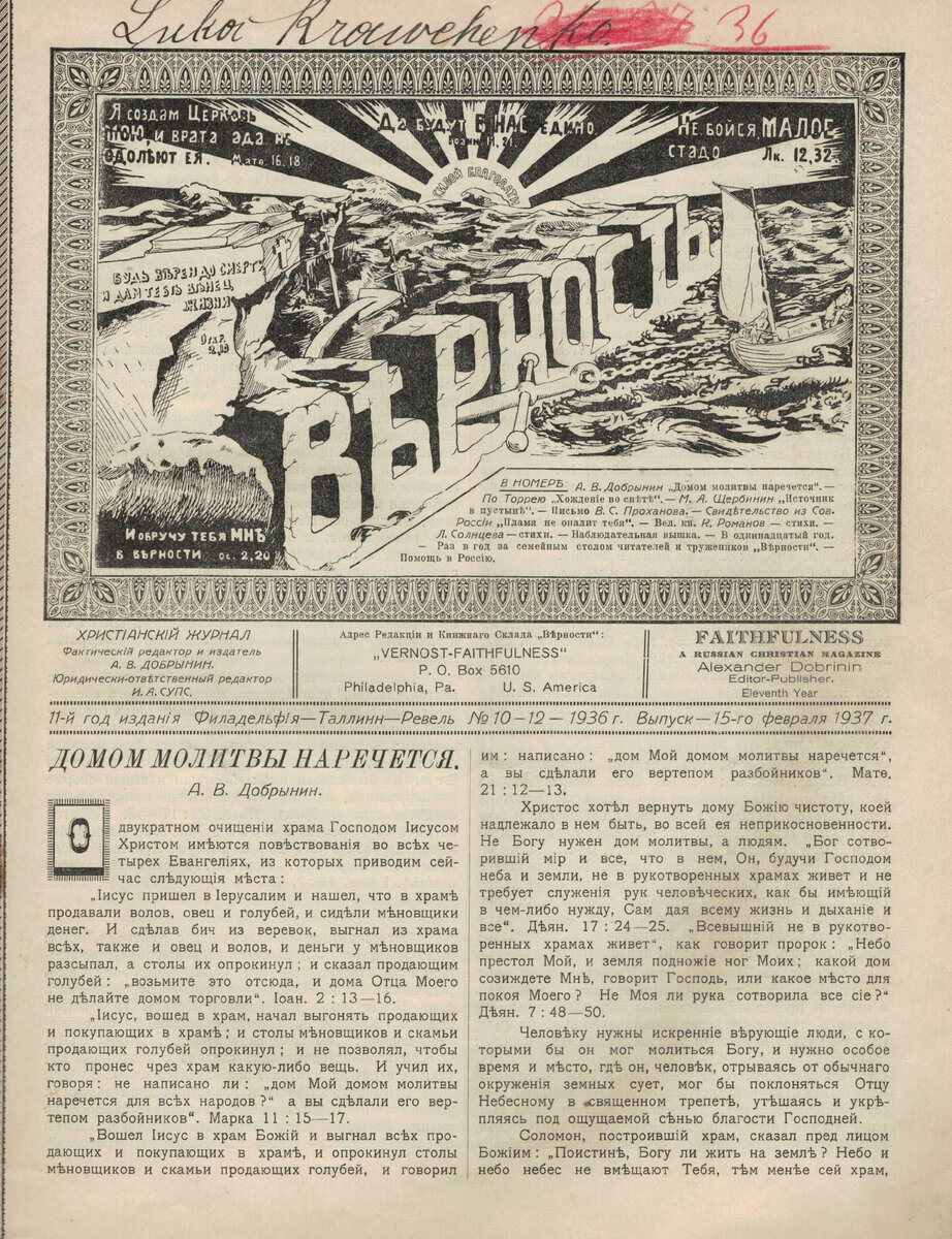 Верность . 1936 . 10-12 .