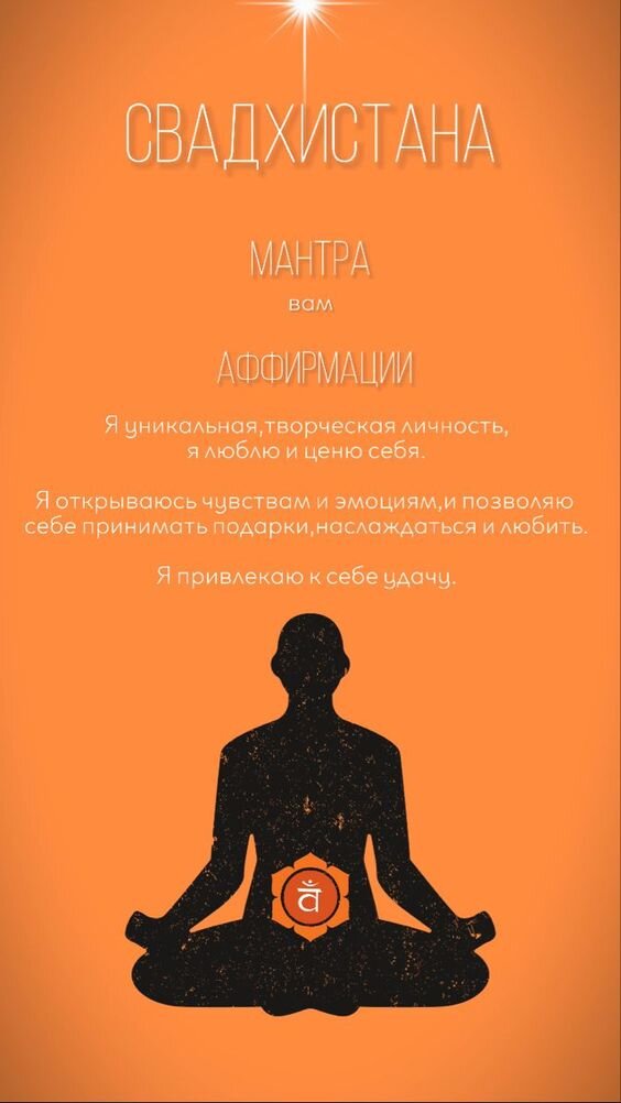 Свадистана находится у основания позвоночника. Её называют сексуальной чакрой. Этот центр отвечает за иммунитет, наслаждение и удовольствие от жизни.