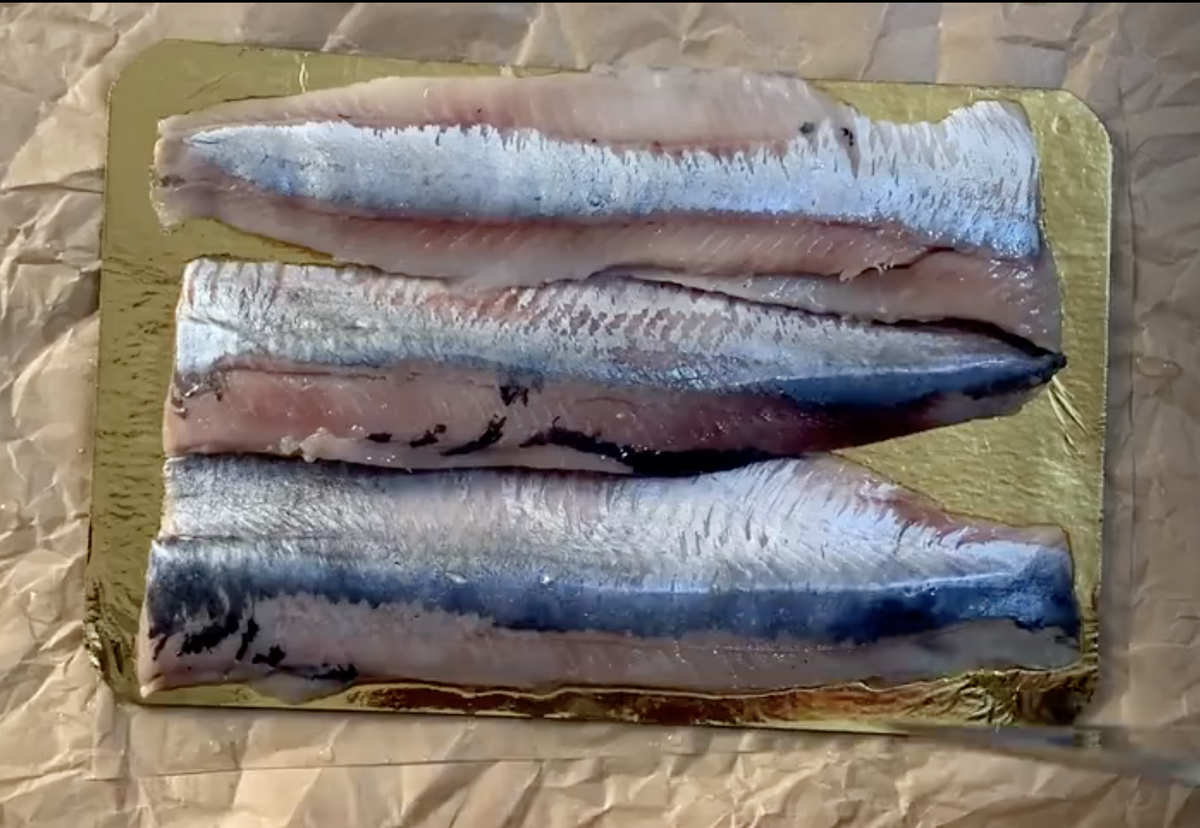 Хотя время нового года уже прошло, желание есть салаты никуда не пропало. Но можно приготовить и подать их в необычном виде, скажем в виде роллов. Ведь мы любим японскую кухню с лососем, не меньше чем нашу селедку под шубой. Так давайте совместим их! Сейчас покажу простой пошаговый рецепт, а результат увидите в конце. С меня простой, но закрученный рецепт, а с вас 1 палец вверх! Вам не сложно, а мне приятно. Спасибо. Без селедки в это ролле никак не обойтись. Я чаще покупаю уже подготовленные филе в собственном соку и без масла. Косточки в них практически не заметны, и много времени с разделкой целой сельди получается сэкономить. Что бы не пачкать разделочную доску, режем филе селёдки длинными полосками прямо на золотой подложке. То же самое проделаем с вареной морковкой. А вот свёклу в этом рецепте натирать не надо. Понадобиться порезать яркий овощ кругами. Или, как говорят в ресторанах, слайсами. Тут кому как удобнее, так и режьте, главное не пере