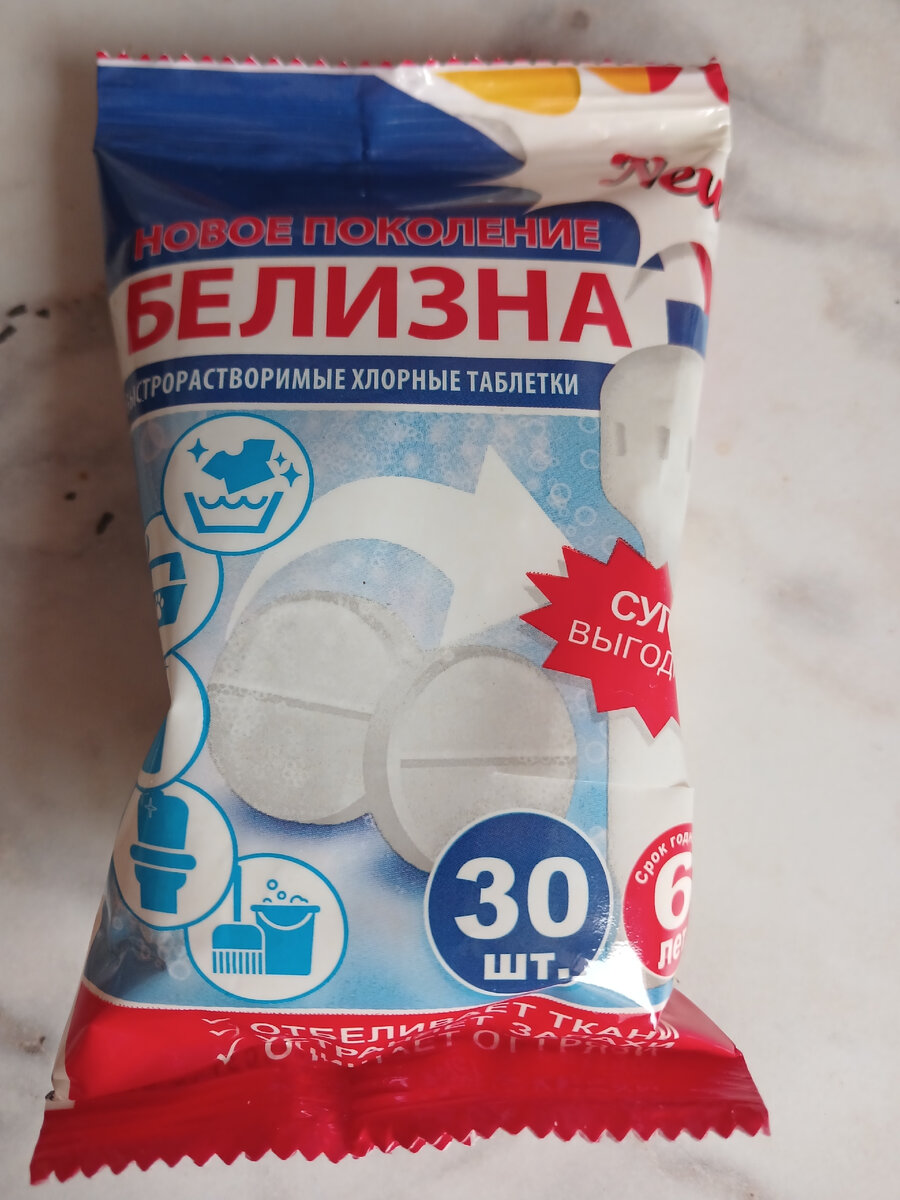 Купила я в Светофоре таблетки "Белизна", стоимость - копейки. Но средство советское, испытанное годами, эффективное и для стирки, и для уборки. В комментариях сразу несколько человек задали вопрос "куда и как применять?" Я расскажу о своих нескольких вариантах. Если вы тоже пользуетесь такой белизной, то поделитесь в комментариях своими методами 1. мытье и дезинфекция пола - растворить 1 таблетку на ведро воды. Конечно, не стоит таким составом мыть пол ежедневно. Но в период ОРВИ, да и 1-2 раза в месяц можно и нужно. Таблетка легко растворяется даже в прохладной воде. 2. замачиваю кухонные полотенца и вообще белые вещи - на тазик добавляю 1-3 таблетки, в зависимости от загрязненности вещей. Еще замачиваю тряпки для пола. 3. кладу в машинку при стирке белых вещей - просто вместе с порошком закидываю в барабан 1 таблетку Белизны. Порошок я насыпаю всегда сразу в барабан. 4. дезинфекция поверхностей - периодически промыть кухонные поверхности, стол с Белизной. Для регулярной чистки