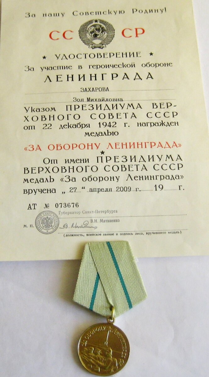 Затем была работа на заводе Ленина до окончания войны. После войны студенчество в Ленинградском строительном техникуме, распределение в Восточно-Казахстанскую область…. И только, когда маме было уже 83 года, она, обращаясь на завод Ленина за справкой о стаже, узнала, что там еще с 1946 года лежит ее медаль «За оборону Ленинграда».