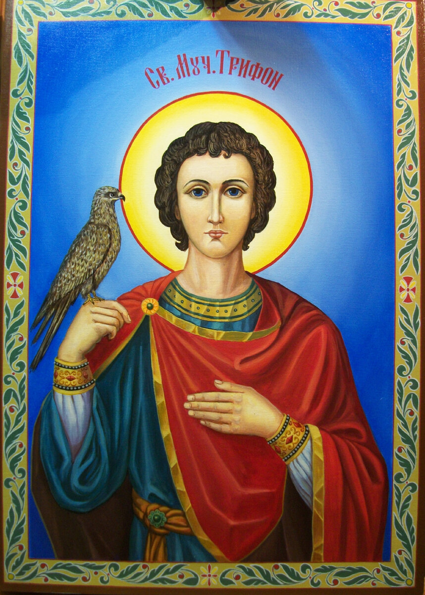 В России святого Трифона почитают с давних времен. Известен случай, когда молитва ко святому Трифону помогла сокольнику Иоанна Грозного.