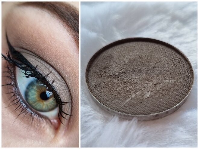 Привет!) Хочу рассказать вам об оттенке, которого всегда не хватает в нюдовых палетках — холодного серо-коричневого. Такого, который бы не рисовал дополнительный синяк, не был бы слишком тёмным, и годился для смоки (возможно, даже дневного). И это Bernovich 128 (прим. недавно бренд изменил названия оттенков и теперь это М31). Круглый рефил в виде монетки, был упакован в пластиковый кейс и коробку. Номер оттенка указан на обороте. Как мне кажется, для такого типа теней обязательно нужна магнитная палетка, так как хранить их в заводском кейсе совершенно неудобно. Он постоянно открывается, а тени в нем рассыпаются. Оттенок достаточно сложный и проявляет себя по-разному, в зависимости от ситуации. В рефиле это грязно-коричневый или даже землистый, на ладони просто средне-коричневый, а на глазах в нем можно увидеть оливковые нотки. Производитель же описывает его как серо-коричневый с едва уловимым оттенком зелёного. Согласна, но зелёный, на мой взгляд, в нем очень заметен. Финиш абсолютно м